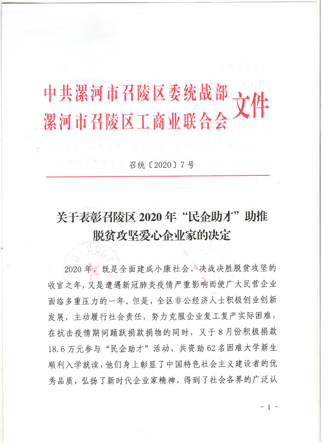 “民企助才”是2020年有中國漯河市召陵區(qū)委統(tǒng)戰(zhàn)部和漯河市召陵區(qū)工商業(yè)聯(lián)合會所倡導的一次募捐活動,旨在幫助家庭貧困、入學困難的大學新生能夠順利入學。